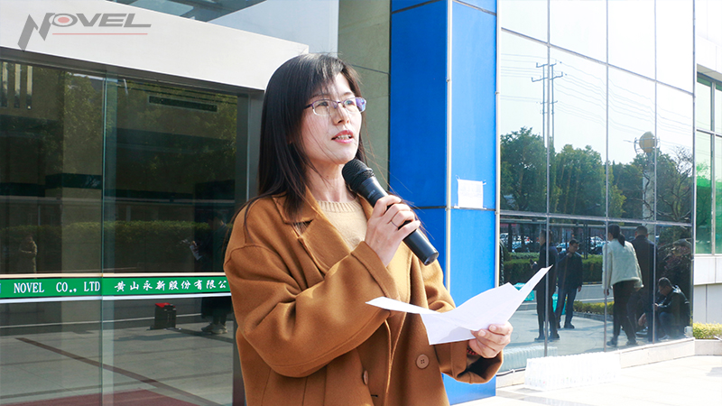 儀式活動在總部三期辦公樓前舉行,首先由女工委曹斐經理宣讀2024年度優秀女職工表彰文件。隨后,由工會領導為優秀女職工頒發榮譽證書,表彰她們一年來在各自崗位上的辛勤付出和杰出貢獻,正是有她們的溫柔與堅韌,撐起了永新股份和諧發展的女性“半邊天”,女工委委員余建紅主持儀式。